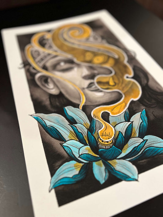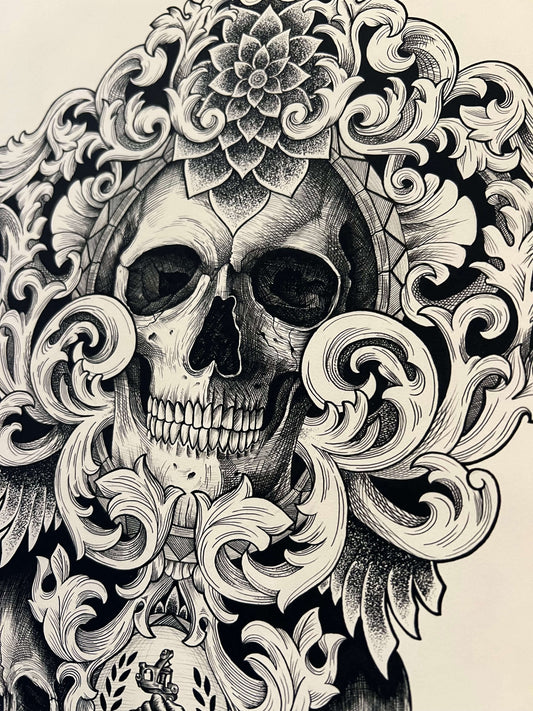 Tattoo artist Tim O'Connor with this exquisite artistic print, exclusively available from his studio in Astoria Queens, NY.